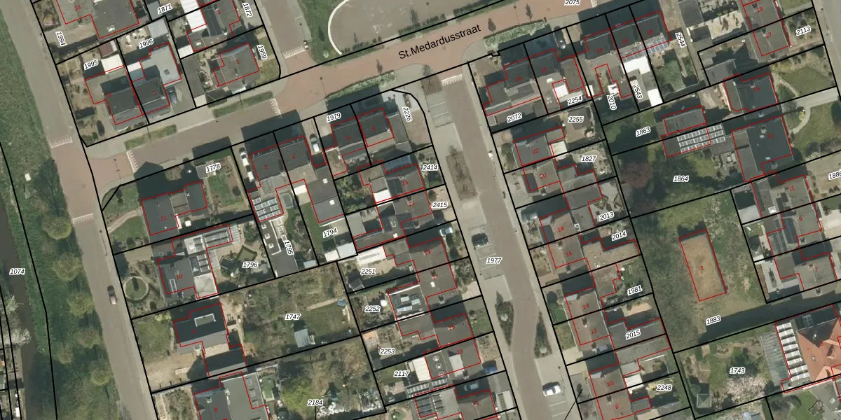 Gebruik de zoekbalk of klik op een perceel voor informatie over de adressen binnen dit perceel.