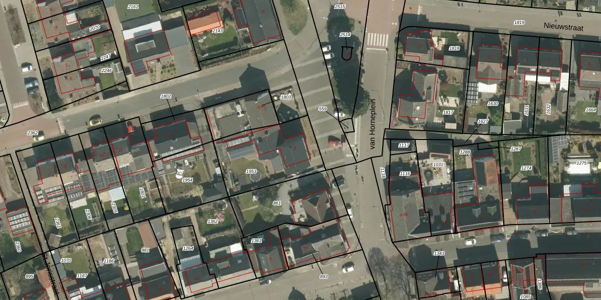 Het perceel waarop van Horneplein 3 staat heeft een oppervlakte van 615 m². Dit is een groot perceel. De perceeloppervlakte wordt geregistreerd door het Kadaster. Gedetailleerde informatie over de maten van dit perceel kunt u vinden in het rapport Kadastrale kaart met maatvoering van van Horneplein 3.