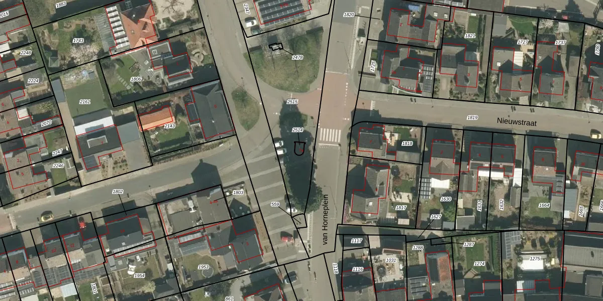 Het perceel waarop van Horneplein 7-a staat heeft een oppervlakte van 12 m². Dit is een klein perceel. De perceeloppervlakte wordt geregistreerd door het Kadaster. Gedetailleerde informatie over de maten van dit perceel kunt u vinden in het rapport Kadastrale kaart met maatvoering van van Horneplein 7-a.