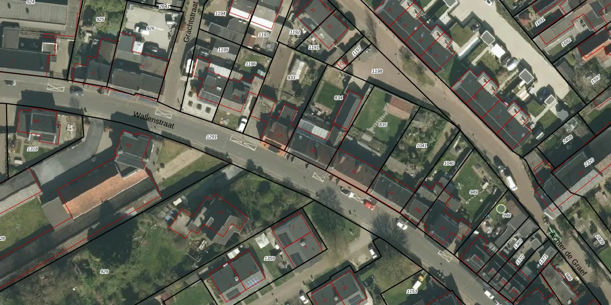Gebruik de zoekbalk of klik op een perceel voor informatie over de adressen binnen dit perceel.
