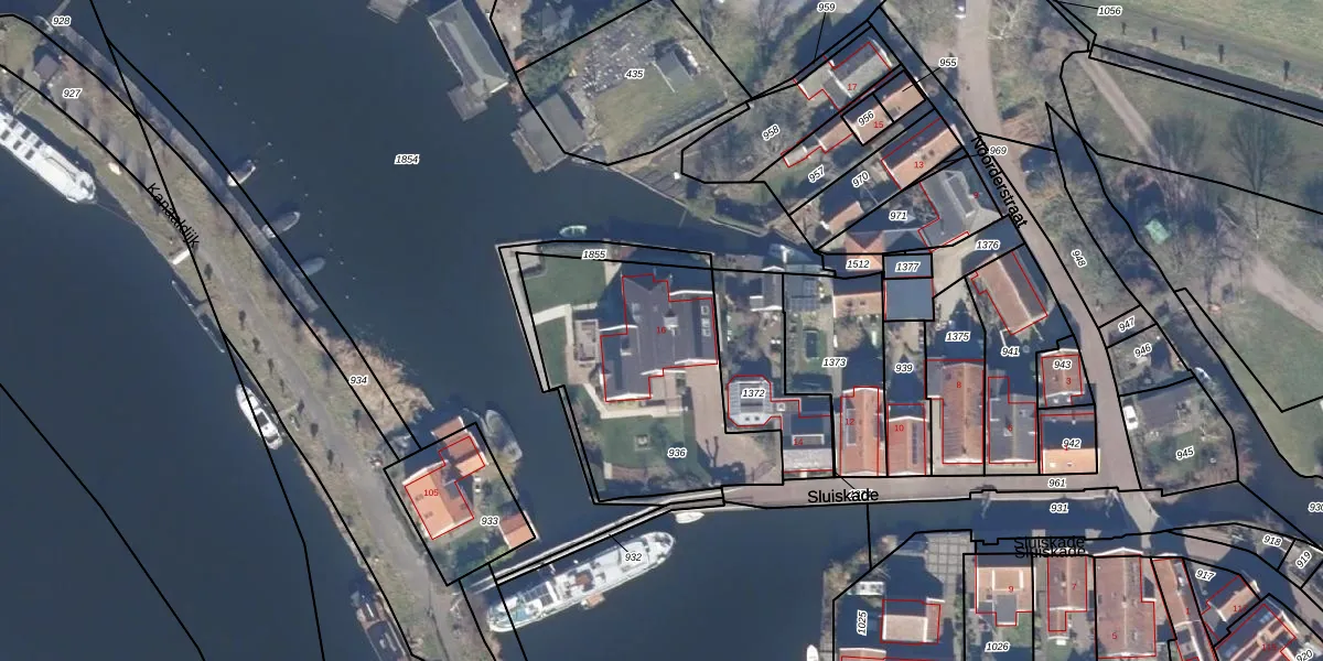 Het perceel waarop Sluiskade 16 staat heeft een oppervlakte van 964 m². Dit is een groot perceel. De perceeloppervlakte wordt geregistreerd door het Kadaster. Gedetailleerde informatie over de maten van dit perceel kunt u vinden in het rapport Kadastrale kaart met maatvoering van Sluiskade 16.