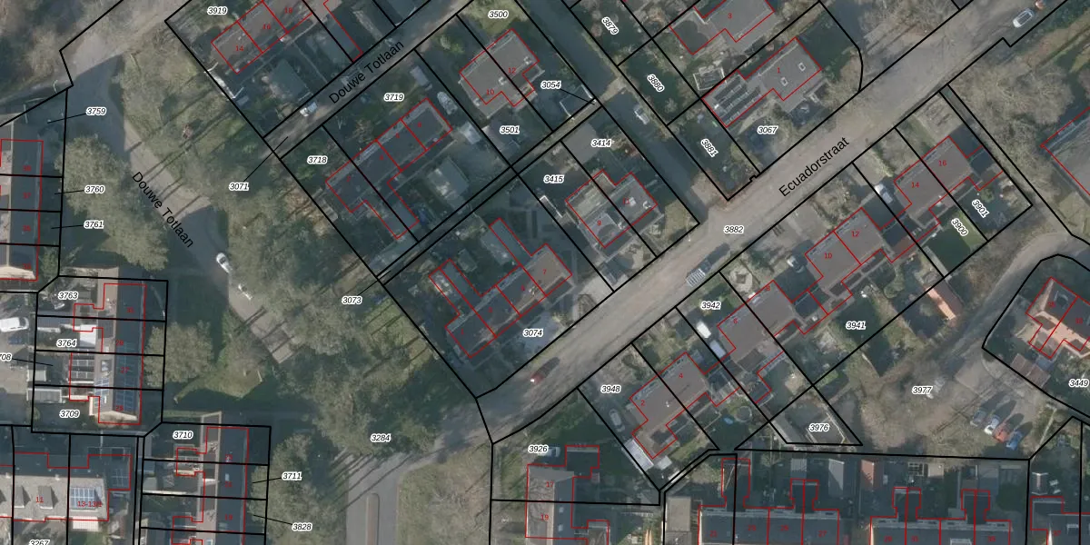 Het perceel waarop Ecuadorstraat 7 staat heeft een oppervlakte van 889 m². Dit is een groot perceel. De perceeloppervlakte wordt geregistreerd door het Kadaster. Gedetailleerde informatie over de maten van dit perceel kunt u vinden in het rapport Kadastrale kaart met maatvoering van Ecuadorstraat 7.