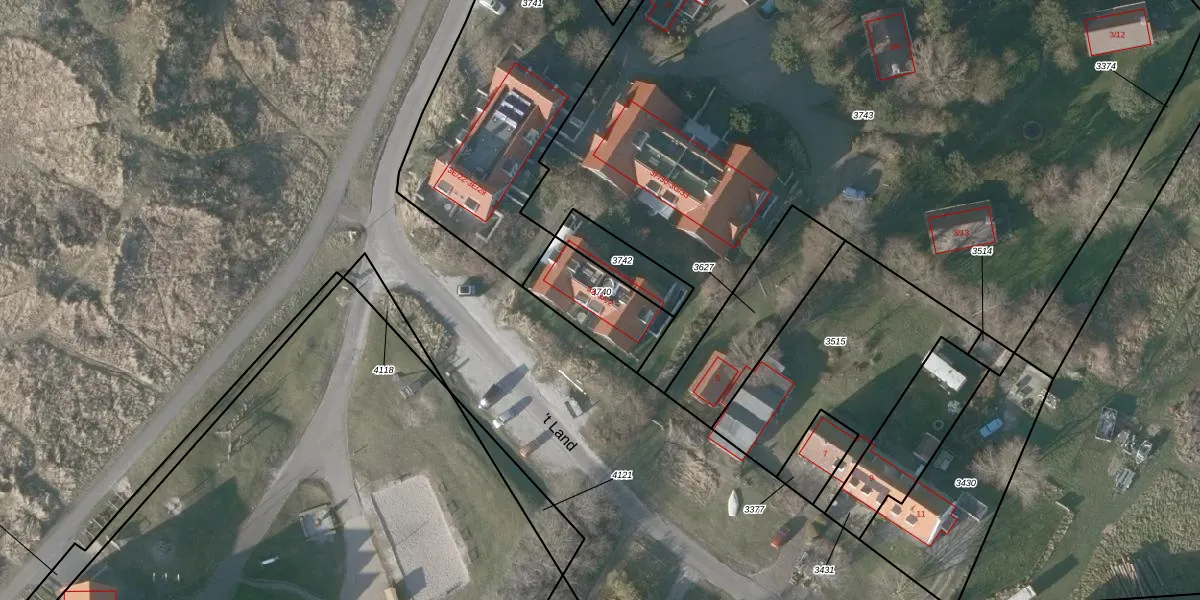 't Land 3-A-2 is gelegen op kadastraal perceel TSL00A3740. Deze kadastrale aanduiding is uniek en wordt gebruikt door het Kadaster om eigendomsrechten en andere zakelijke rechten vast te leggen. Het perceel maakt onderdeel uit van de kadastrale gemeente Terschelling.