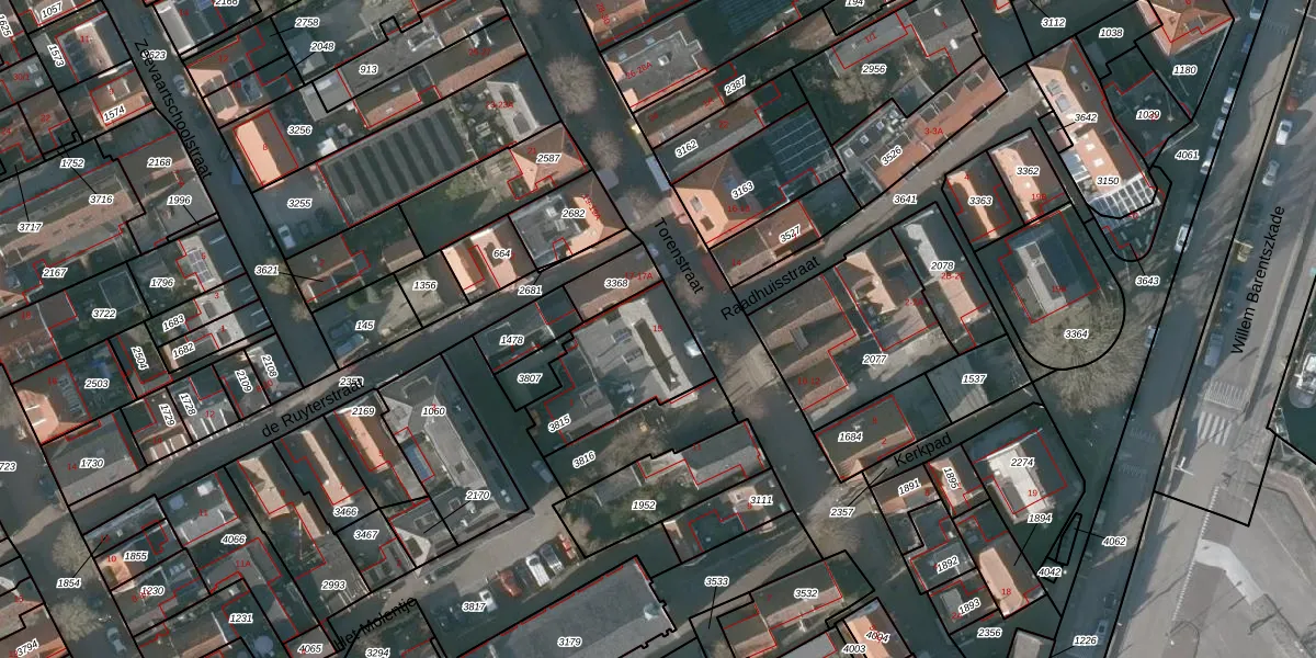 Het perceel waarop Torenstraat 15 staat heeft een oppervlakte van 388 m². Dit is een groot perceel. De perceeloppervlakte wordt geregistreerd door het Kadaster. Gedetailleerde informatie over de maten van dit perceel kunt u vinden in het rapport Kadastrale kaart met maatvoering van Torenstraat 15.