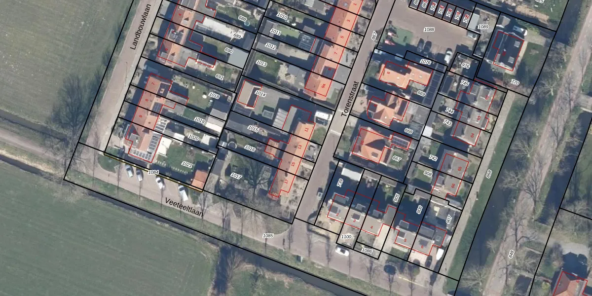 Gebruik de zoekbalk of klik op een perceel voor informatie over de adressen binnen dit perceel.