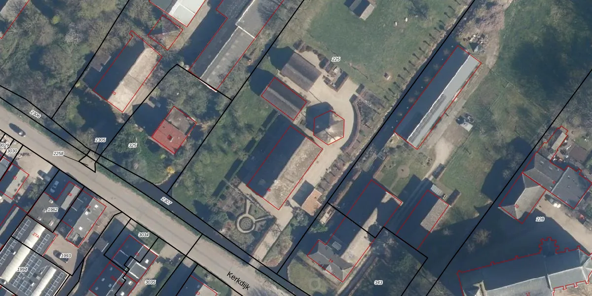Het perceel waarop Kerkdijk 16 staat heeft een oppervlakte van 7555 m². Dit is een zeer groot perceel. De perceeloppervlakte wordt geregistreerd door het Kadaster. Gedetailleerde informatie over de maten van dit perceel kunt u vinden in het rapport Kadastrale kaart met maatvoering van Kerkdijk 16.