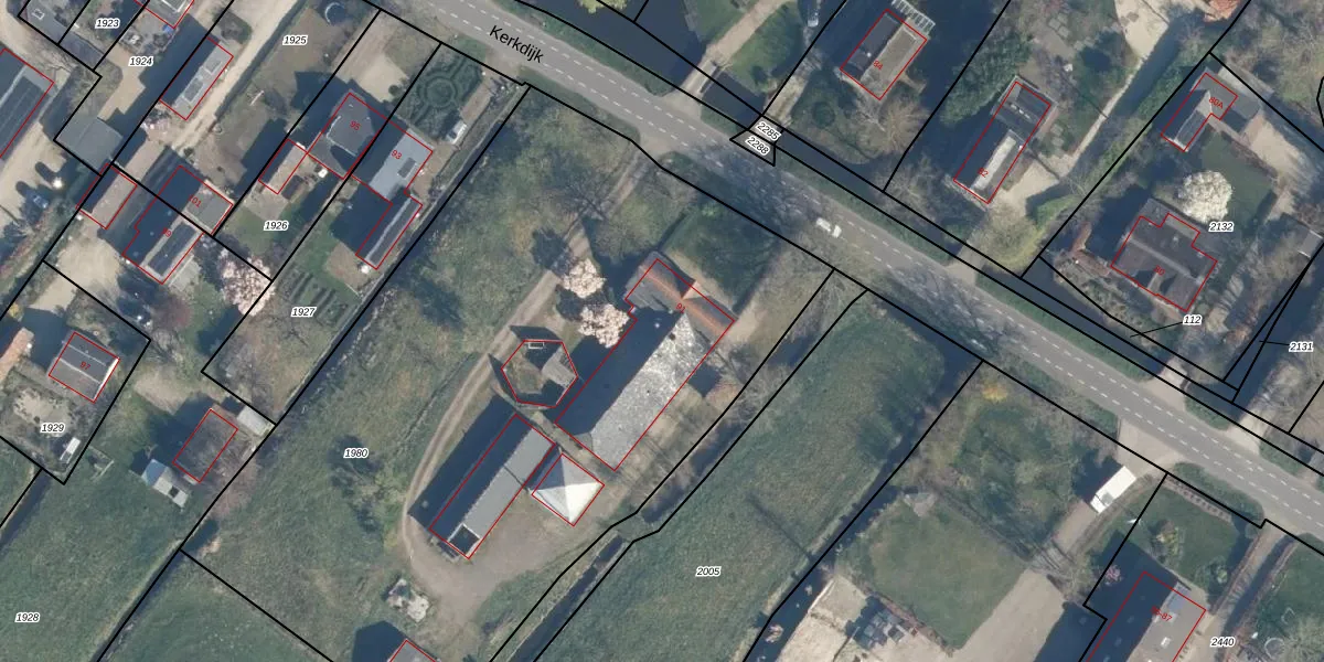 Het perceel waarop Kerkdijk 91 staat heeft een oppervlakte van 4545 m². Dit is een zeer groot perceel. De perceeloppervlakte wordt geregistreerd door het Kadaster. Gedetailleerde informatie over de maten van dit perceel kunt u vinden in het rapport Kadastrale kaart met maatvoering van Kerkdijk 91.