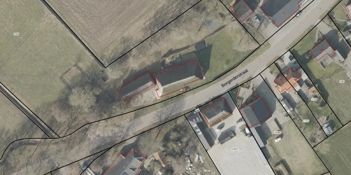 Borgerderstraat 1 is gelegen op kadastraal perceel BGR01M256. Deze kadastrale aanduiding is uniek en wordt gebruikt door het Kadaster om eigendomsrechten en andere zakelijke rechten vast te leggen. Het perceel maakt onderdeel uit van de kadastrale gemeente Borger.