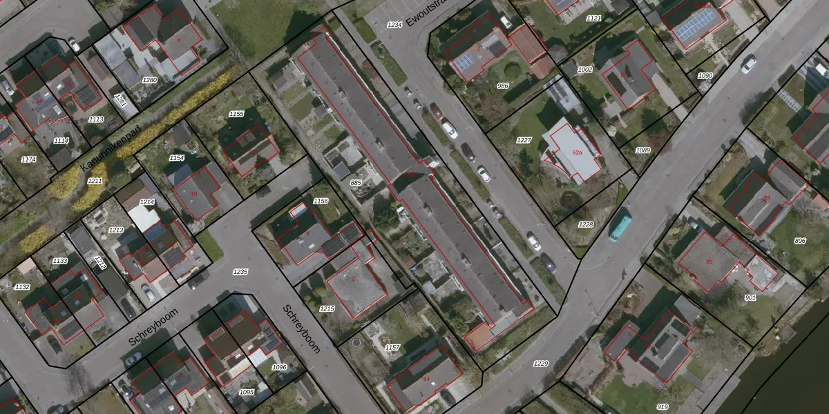 Het perceel waarop Ewoutstraat 29 staat heeft een oppervlakte van 2260 m². Dit is een zeer groot perceel. De perceeloppervlakte wordt geregistreerd door het Kadaster. Gedetailleerde informatie over de maten van dit perceel kunt u vinden in het rapport Kadastrale kaart met maatvoering van Ewoutstraat 29.
