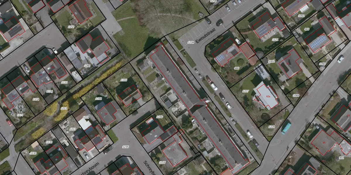 Het perceel waarop Ewoutstraat 35 staat heeft een oppervlakte van 2260 m². Dit is een zeer groot perceel. De perceeloppervlakte wordt geregistreerd door het Kadaster. Gedetailleerde informatie over de maten van dit perceel kunt u vinden in het rapport Kadastrale kaart met maatvoering van Ewoutstraat 35.