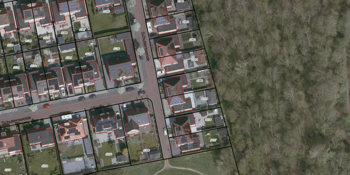 Schuttersweide 21 is gelegen op kadastraal perceel SAS00K1080. Deze kadastrale aanduiding is uniek en wordt gebruikt door het Kadaster om eigendomsrechten en andere zakelijke rechten vast te leggen. Het perceel maakt onderdeel uit van de kadastrale gemeente Sas van Gent.