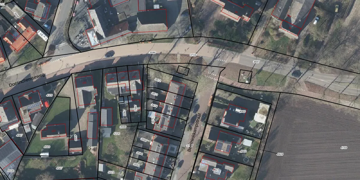 Het adres ligt op het perceel VSV00-E-3472, dat zich in de kadastrale gemeente Varsseveld bevindt. De gemiddelde perceelgrootte in Varsseveld is 5725,04 m². Dit perceel is kleiner: de perceeloppervlakte bedraagt 265 m². Het kleinste perceel in de kadastrale gemeente is 0 m² groot. De grootste perceeloppervlakte is 29,0 ha. Op het perceel bevinden zich geen andere adressen. De laatste wijziging in het de Basisregistratie Kadaster (BRK) was op 02-03-2001.