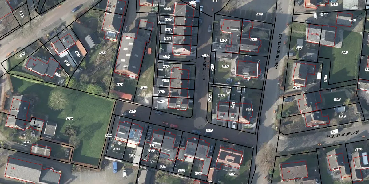 de Houtwerf 9 is gelegen op kadastraal perceel VSV00E5170. Deze kadastrale aanduiding is uniek en wordt gebruikt door het Kadaster om eigendomsrechten en andere zakelijke rechten vast te leggen. Het perceel maakt onderdeel uit van de kadastrale gemeente Varsseveld.