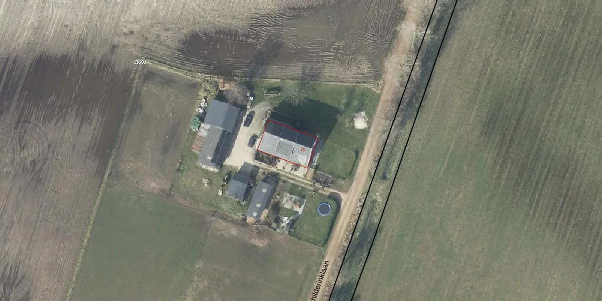 Het perceel waarop Schilderinklaan 15 staat heeft een oppervlakte van 2,9 ha. Dit is een zeer groot perceel. De perceeloppervlakte wordt geregistreerd door het Kadaster. Gedetailleerde informatie over de maten van dit perceel kunt u vinden in het rapport Kadastrale kaart met maatvoering van Schilderinklaan 15.