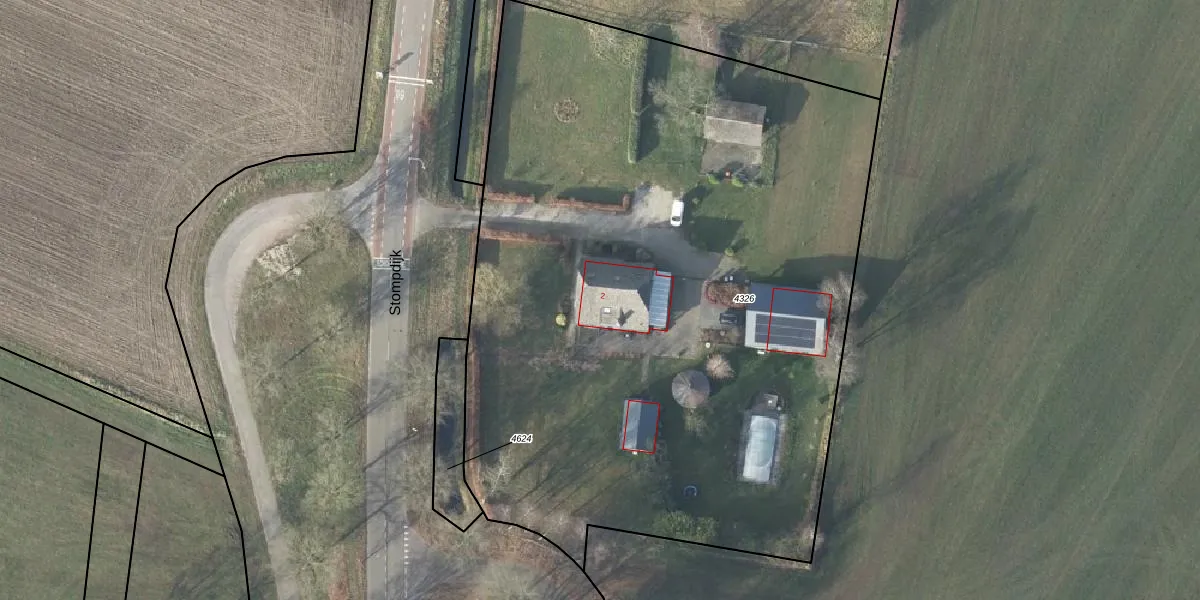 Stompdijk 2 is gelegen op kadastraal perceel VSV00E4326. Deze kadastrale aanduiding is uniek en wordt gebruikt door het Kadaster om eigendomsrechten en andere zakelijke rechten vast te leggen. Het perceel maakt onderdeel uit van de kadastrale gemeente Varsseveld.