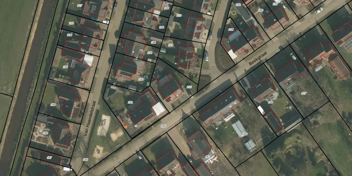 Beekstraat 44 is gelegen op kadastraal perceel OLO00G215. Deze kadastrale aanduiding is uniek en wordt gebruikt door het Kadaster om eigendomsrechten en andere zakelijke rechten vast te leggen. Het perceel maakt onderdeel uit van de kadastrale gemeente Oploo.