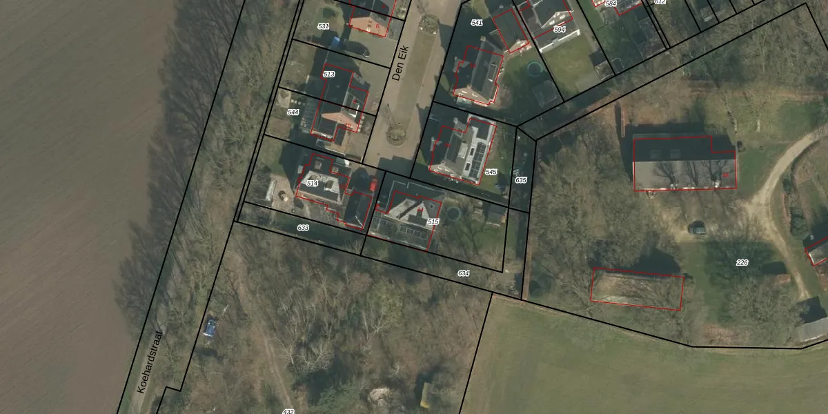 Het perceel waarop Den Eik 14 staat heeft een oppervlakte van 514 m². Dit is een groot perceel. De perceeloppervlakte wordt geregistreerd door het Kadaster. Gedetailleerde informatie over de maten van dit perceel kunt u vinden in het rapport Kadastrale kaart met maatvoering van Den Eik 14.