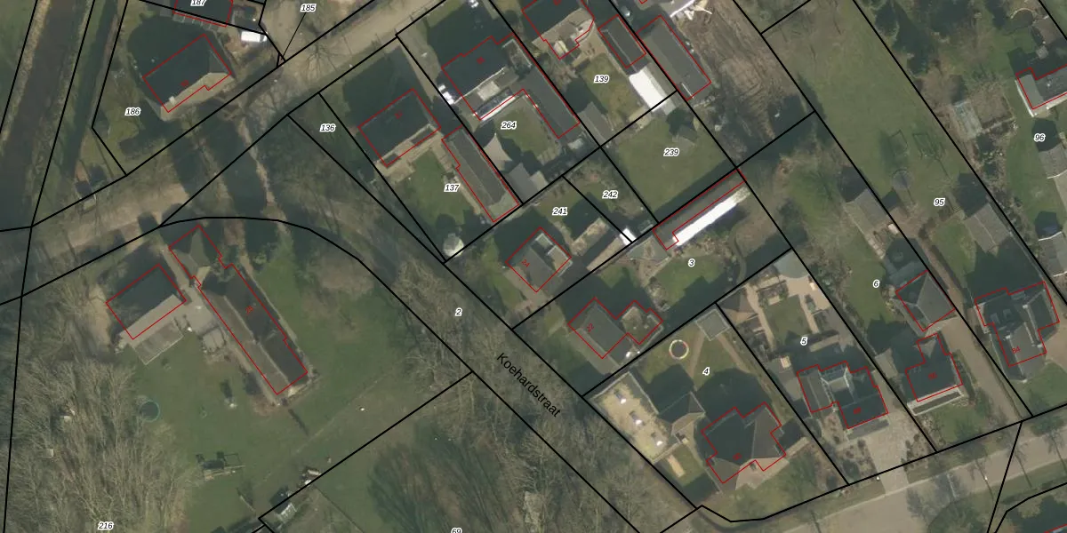 Koehardstraat 24 is gelegen op kadastraal perceel OLO00G241. Deze kadastrale aanduiding is uniek en wordt gebruikt door het Kadaster om eigendomsrechten en andere zakelijke rechten vast te leggen. Het perceel maakt onderdeel uit van de kadastrale gemeente Oploo.