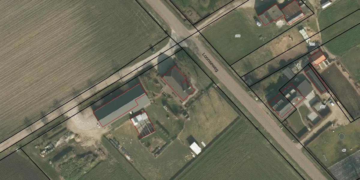 Het perceel waarop Loonseweg 36 staat heeft een oppervlakte van 3,3 ha. Dit is een zeer groot perceel. De perceeloppervlakte wordt geregistreerd door het Kadaster. Gedetailleerde informatie over de maten van dit perceel kunt u vinden in het rapport Kadastrale kaart met maatvoering van Loonseweg 36.