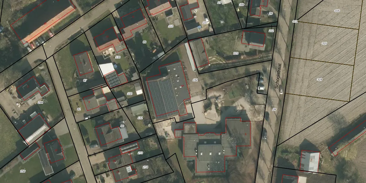 Schoolstraat 5-A is gelegen op kadastraal perceel OLO00G154. Deze kadastrale aanduiding is uniek en wordt gebruikt door het Kadaster om eigendomsrechten en andere zakelijke rechten vast te leggen. Het perceel maakt onderdeel uit van de kadastrale gemeente Oploo.