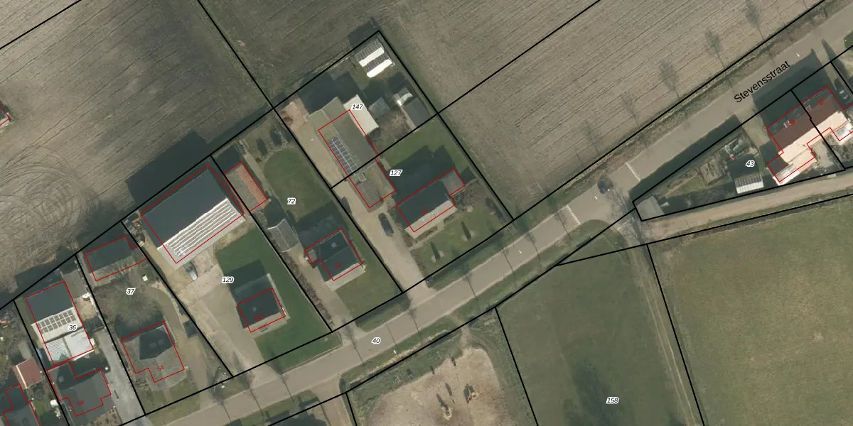 Stevensstraat 50 is gelegen op kadastraal perceel OLO00G127. Deze kadastrale aanduiding is uniek en wordt gebruikt door het Kadaster om eigendomsrechten en andere zakelijke rechten vast te leggen. Het perceel maakt onderdeel uit van de kadastrale gemeente Oploo.