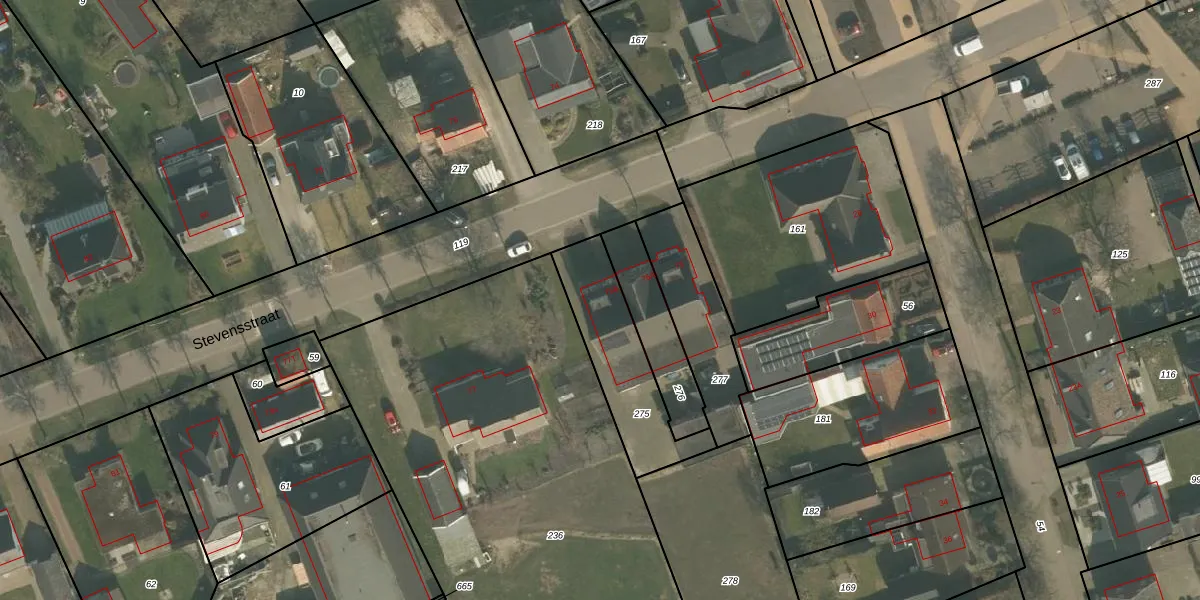 Stevensstraat 75-B is gelegen op kadastraal perceel OLO00G275. Deze kadastrale aanduiding is uniek en wordt gebruikt door het Kadaster om eigendomsrechten en andere zakelijke rechten vast te leggen. Het perceel maakt onderdeel uit van de kadastrale gemeente Oploo.