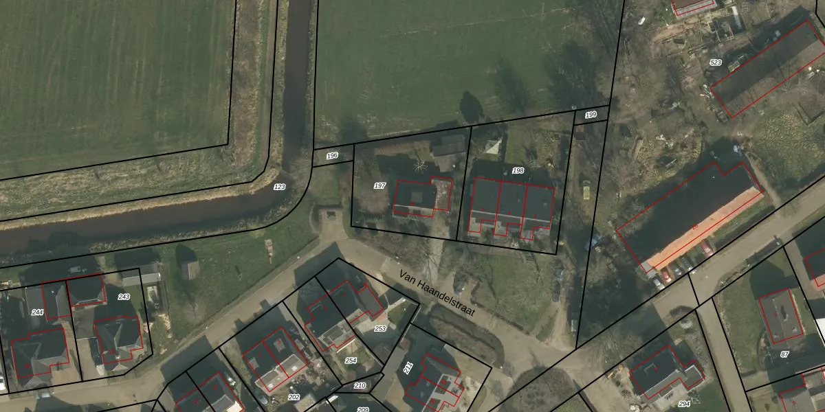 Van Haandelstraat 8 is gelegen op kadastraal perceel OLO00G197. Deze kadastrale aanduiding is uniek en wordt gebruikt door het Kadaster om eigendomsrechten en andere zakelijke rechten vast te leggen. Het perceel maakt onderdeel uit van de kadastrale gemeente Oploo.