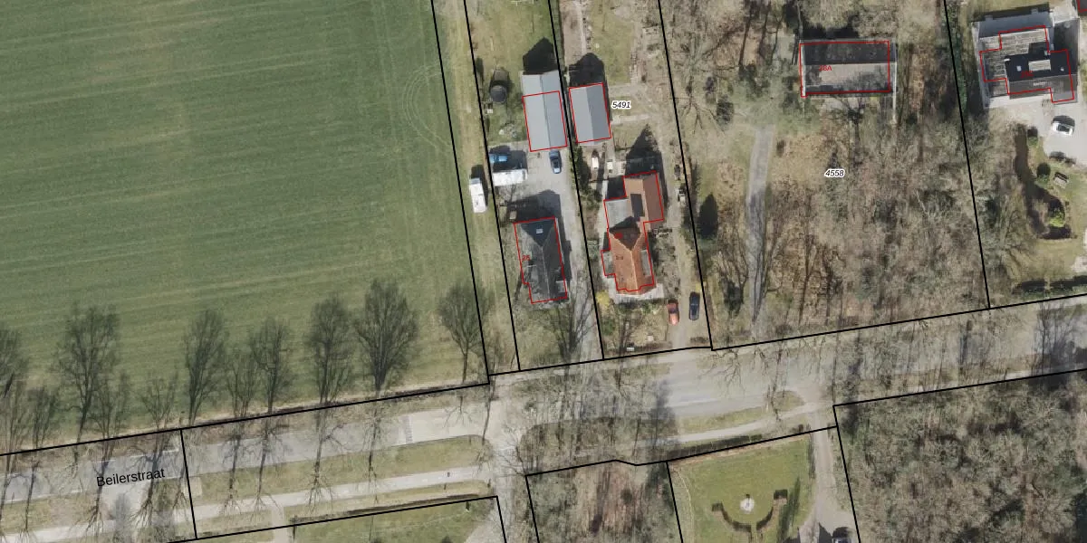 Het perceel waarop Beilerstraat 26 staat heeft een oppervlakte van 2150 m². Dit is een zeer groot perceel. De perceeloppervlakte wordt geregistreerd door het Kadaster. Gedetailleerde informatie over de maten van dit perceel kunt u vinden in het rapport Kadastrale kaart met maatvoering van Beilerstraat 26.