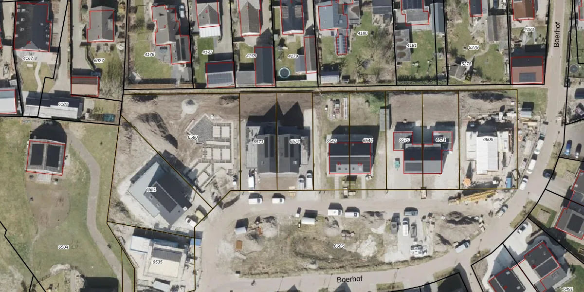Het perceel waarop Boerhof 9 staat heeft een oppervlakte van 419 m². Dit is een groot perceel. De perceeloppervlakte wordt geregistreerd door het Kadaster. Gedetailleerde informatie over de maten van dit perceel kunt u vinden in het rapport Kadastrale kaart met maatvoering van Boerhof 9.