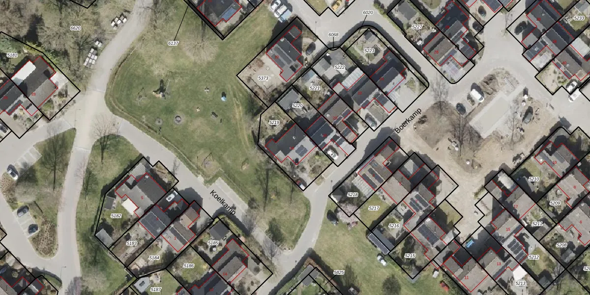 Het perceel waarop Boerkamp 16 staat heeft een oppervlakte van 382 m². Dit is een groot perceel. De perceeloppervlakte wordt geregistreerd door het Kadaster. Gedetailleerde informatie over de maten van dit perceel kunt u vinden in het rapport Kadastrale kaart met maatvoering van Boerkamp 16.