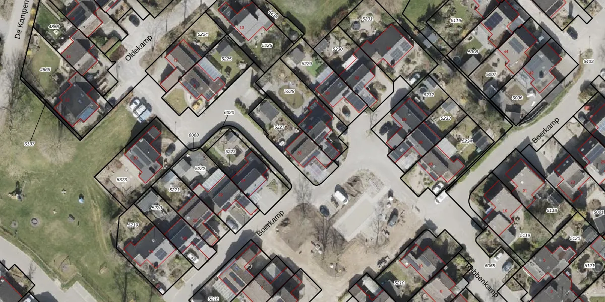 Het perceel waarop Boerkamp 26 staat heeft een oppervlakte van 322 m². Dit is een groot perceel. De perceeloppervlakte wordt geregistreerd door het Kadaster. Gedetailleerde informatie over de maten van dit perceel kunt u vinden in het rapport Kadastrale kaart met maatvoering van Boerkamp 26.