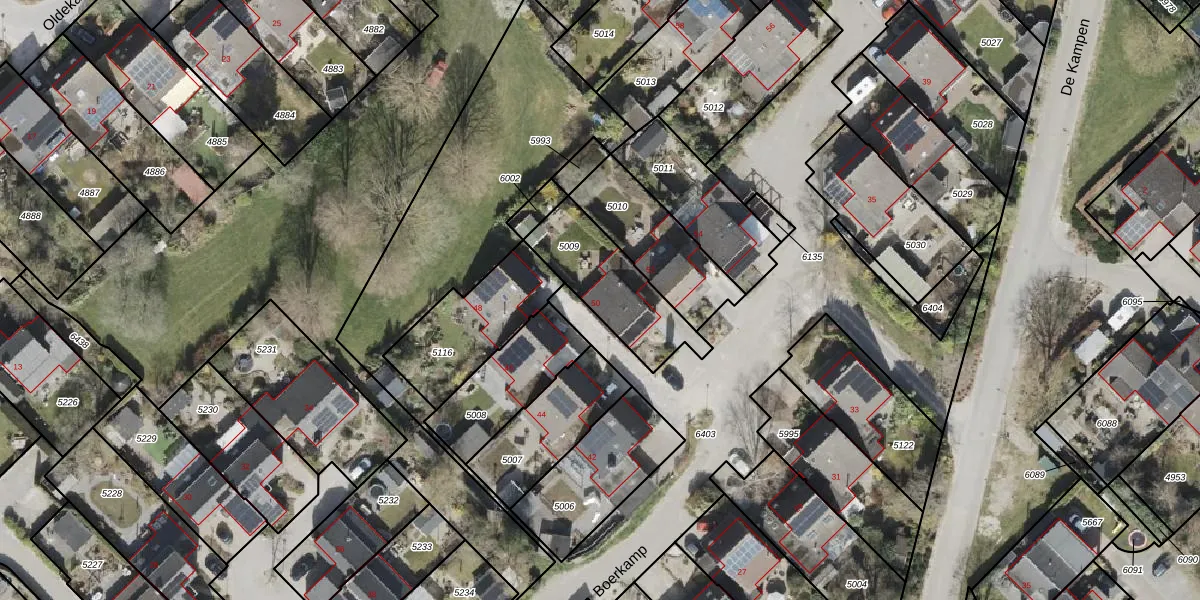 Het perceel waarop Boerkamp 50 staat heeft een oppervlakte van 332 m². Dit is een groot perceel. De perceeloppervlakte wordt geregistreerd door het Kadaster. Gedetailleerde informatie over de maten van dit perceel kunt u vinden in het rapport Kadastrale kaart met maatvoering van Boerkamp 50.