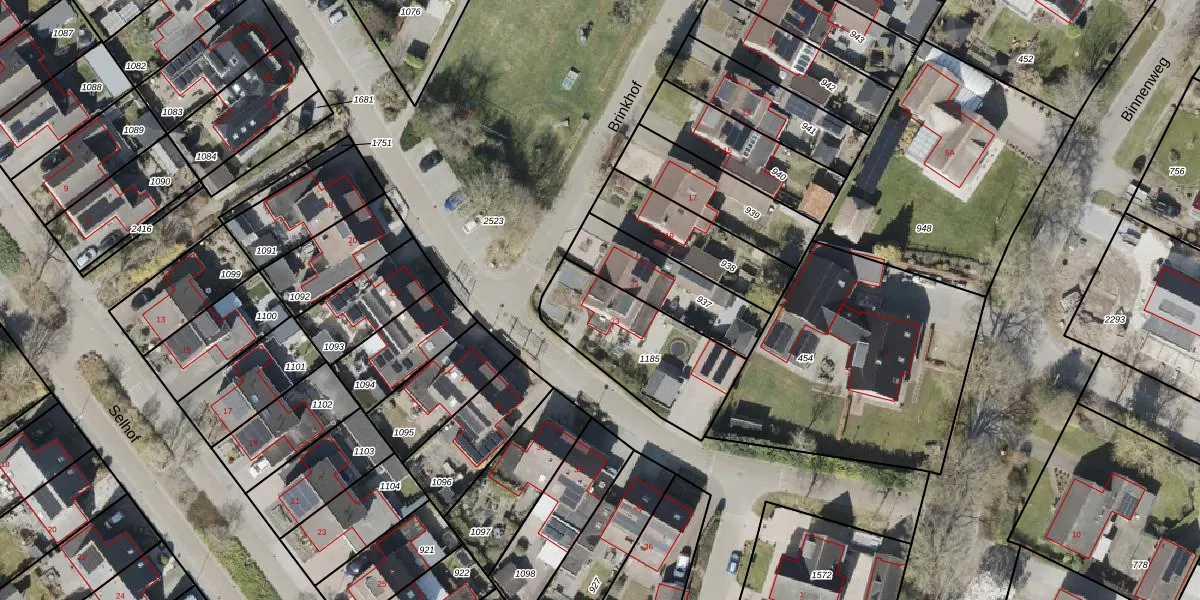 Het perceel waarop Brinkhof 23 staat heeft een oppervlakte van 476 m². Dit is een groot perceel. De perceeloppervlakte wordt geregistreerd door het Kadaster. Gedetailleerde informatie over de maten van dit perceel kunt u vinden in het rapport Kadastrale kaart met maatvoering van Brinkhof 23.