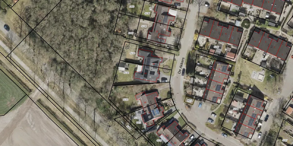 Het perceel waarop De Akkers 18 staat heeft een oppervlakte van 484 m². Dit is een groot perceel. De perceeloppervlakte wordt geregistreerd door het Kadaster. Gedetailleerde informatie over de maten van dit perceel kunt u vinden in het rapport Kadastrale kaart met maatvoering van De Akkers 18.