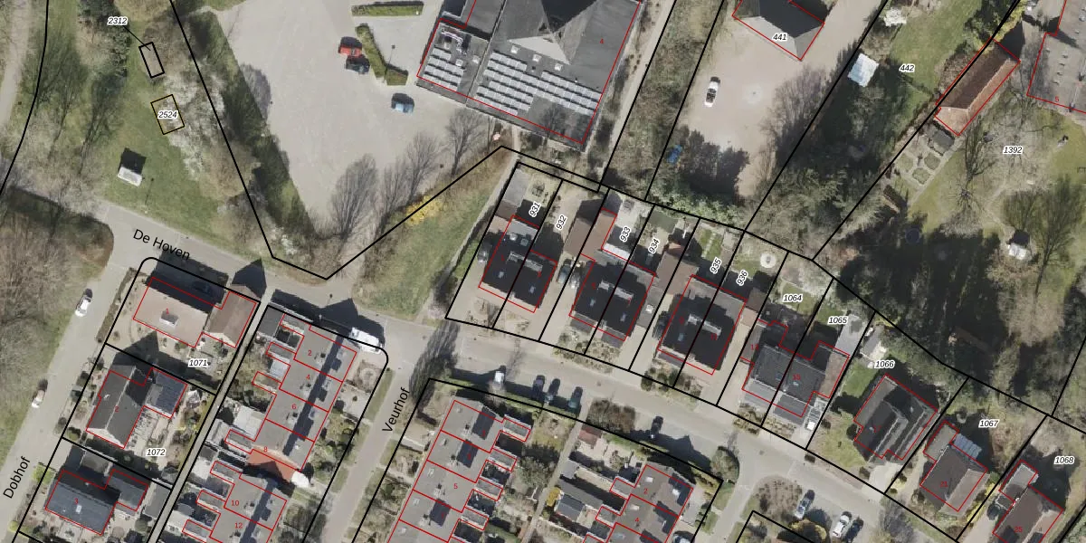 Het perceel waarop De Hoven 3 staat heeft een oppervlakte van 262 m². Dit is een middelgroot perceel. De perceeloppervlakte wordt geregistreerd door het Kadaster. Gedetailleerde informatie over de maten van dit perceel kunt u vinden in het rapport Kadastrale kaart met maatvoering van De Hoven 3.