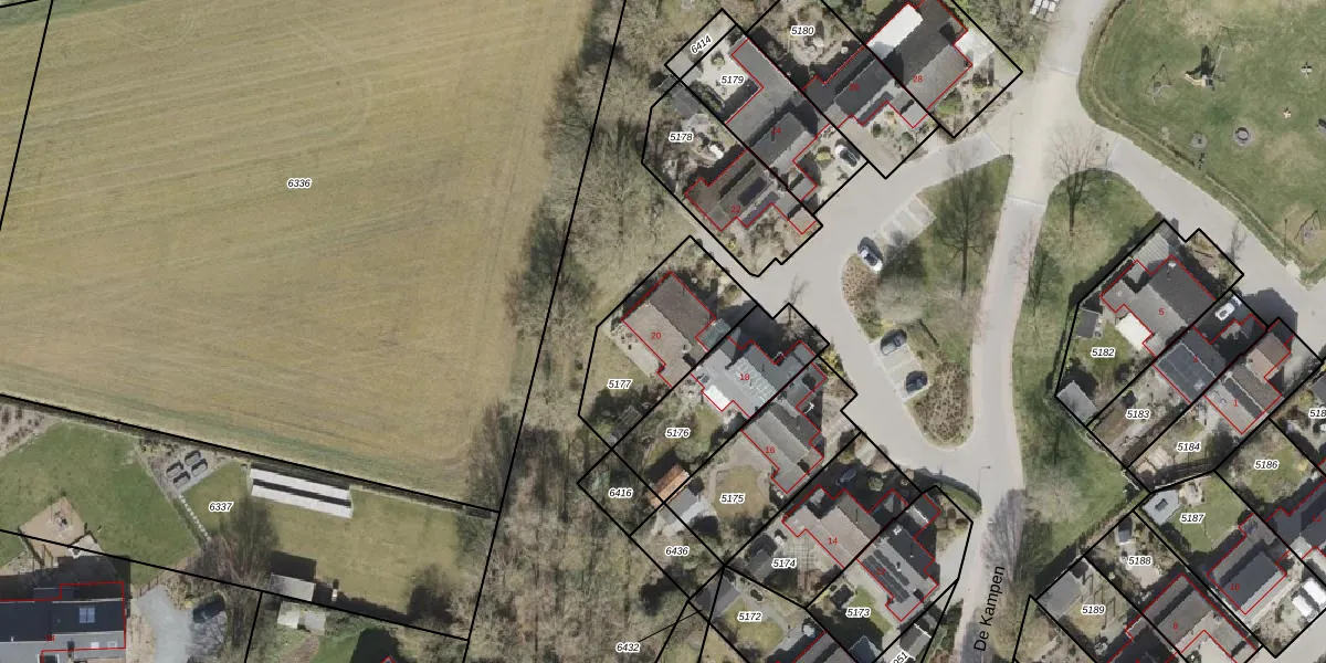 Het perceel waarop De Kampen 20 staat heeft een oppervlakte van 410 m². Dit is een groot perceel. De perceeloppervlakte wordt geregistreerd door het Kadaster. Gedetailleerde informatie over de maten van dit perceel kunt u vinden in het rapport Kadastrale kaart met maatvoering van De Kampen 20.
