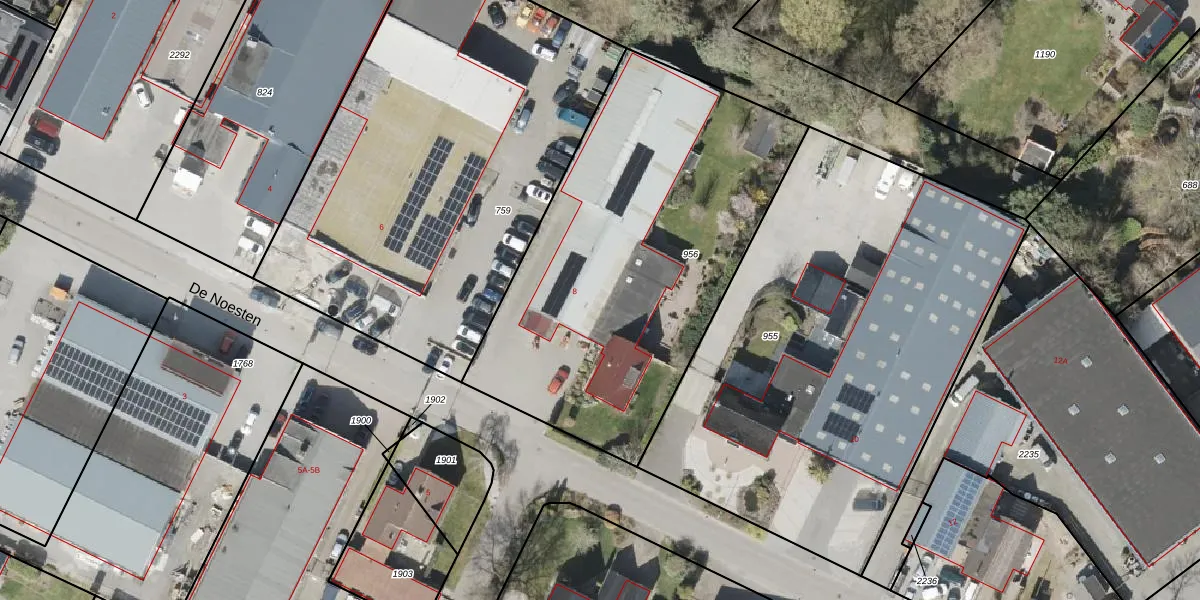 Het perceel waarop De Noesten 8 staat heeft een oppervlakte van 2060 m². Dit is een zeer groot perceel. De perceeloppervlakte wordt geregistreerd door het Kadaster. Gedetailleerde informatie over de maten van dit perceel kunt u vinden in het rapport Kadastrale kaart met maatvoering van De Noesten 8.