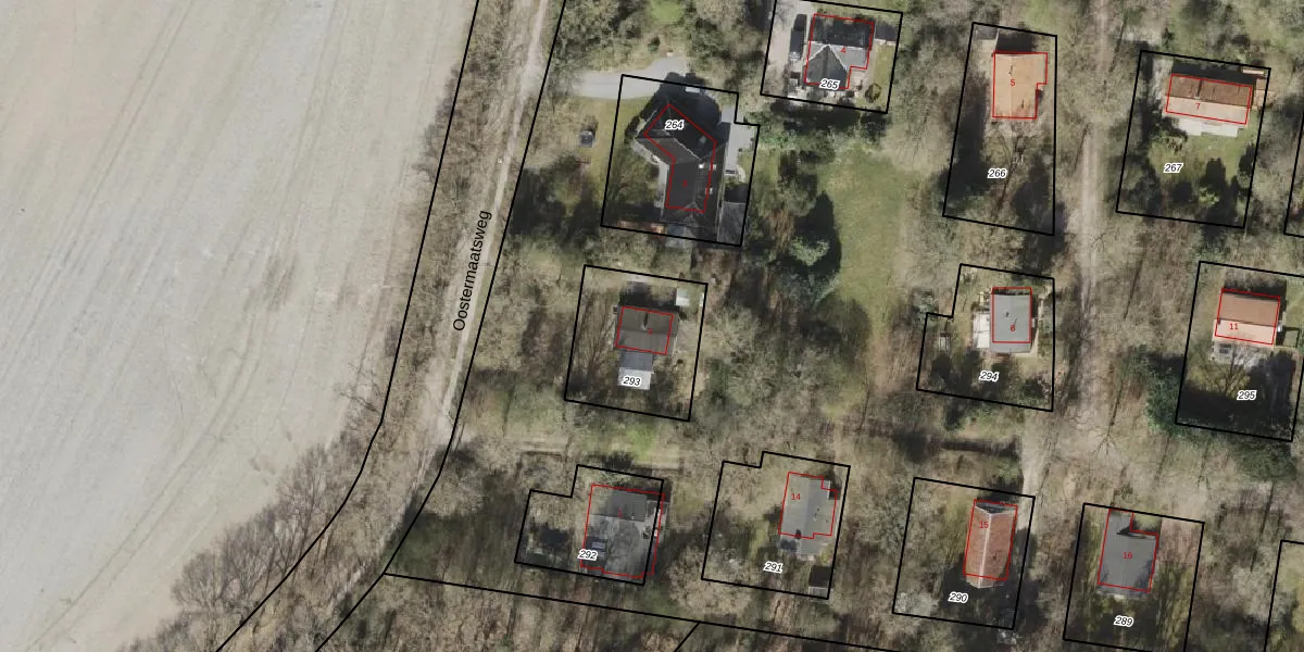Het perceel waarop De Oostermaat 2 staat heeft een oppervlakte van 399 m². Dit is een groot perceel. De perceeloppervlakte wordt geregistreerd door het Kadaster. Gedetailleerde informatie over de maten van dit perceel kunt u vinden in het rapport Kadastrale kaart met maatvoering van De Oostermaat 2.