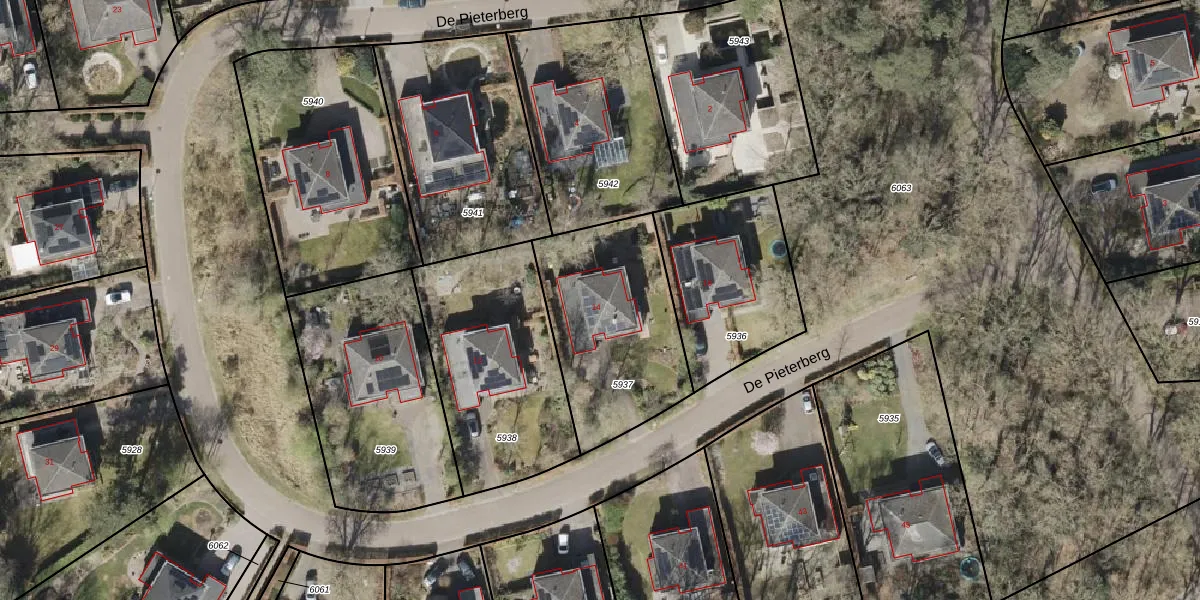 Het perceel waarop De Pieterberg 14 staat heeft een oppervlakte van 704 m². Dit is een groot perceel. De perceeloppervlakte wordt geregistreerd door het Kadaster. Gedetailleerde informatie over de maten van dit perceel kunt u vinden in het rapport Kadastrale kaart met maatvoering van De Pieterberg 14.