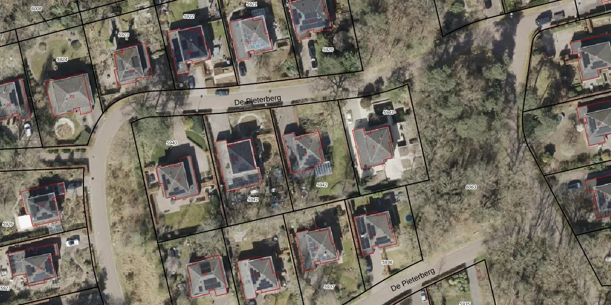 Het perceel waarop De Pieterberg 4 staat heeft een oppervlakte van 748 m². Dit is een groot perceel. De perceeloppervlakte wordt geregistreerd door het Kadaster. Gedetailleerde informatie over de maten van dit perceel kunt u vinden in het rapport Kadastrale kaart met maatvoering van De Pieterberg 4.