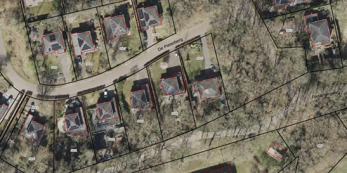 Het perceel waarop De Pieterberg 43 staat heeft een oppervlakte van 924 m². Dit is een groot perceel. De perceeloppervlakte wordt geregistreerd door het Kadaster. Gedetailleerde informatie over de maten van dit perceel kunt u vinden in het rapport Kadastrale kaart met maatvoering van De Pieterberg 43.