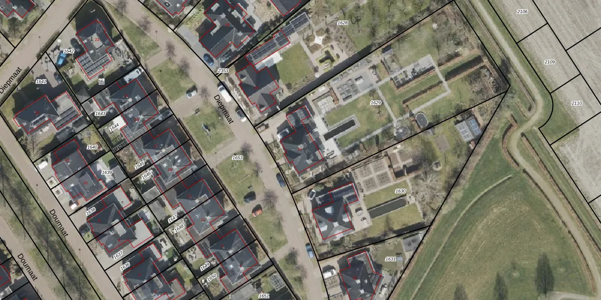 Het perceel waarop Diepmaat 14 staat heeft een oppervlakte van 2419 m². Dit is een zeer groot perceel. De perceeloppervlakte wordt geregistreerd door het Kadaster. Gedetailleerde informatie over de maten van dit perceel kunt u vinden in het rapport Kadastrale kaart met maatvoering van Diepmaat 14.