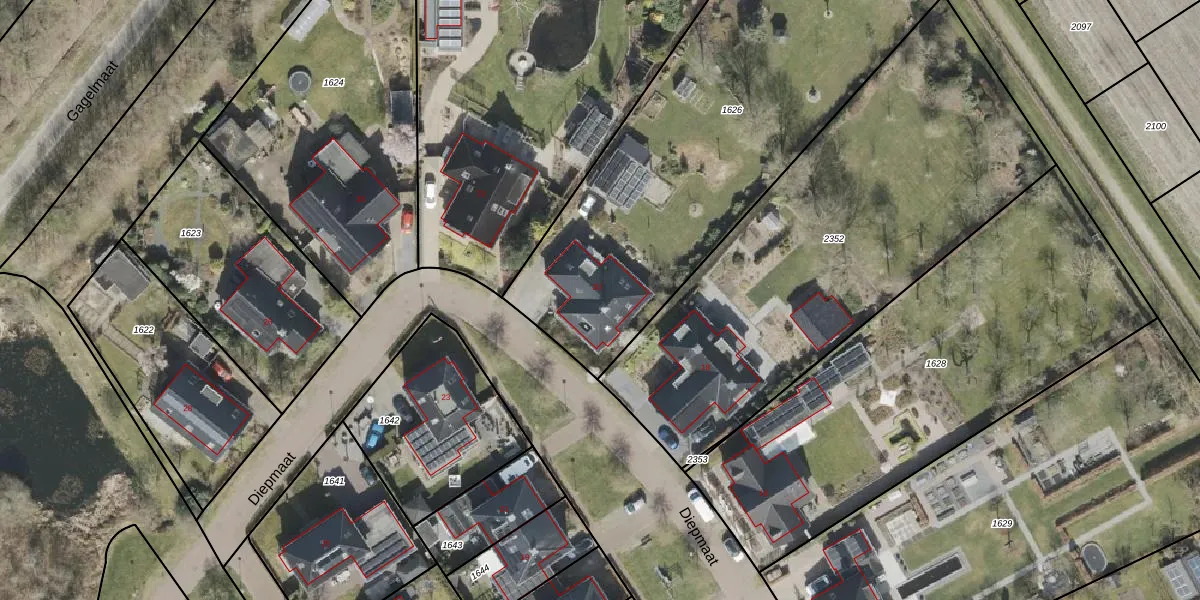 Het perceel waarop Diepmaat 20 staat heeft een oppervlakte van 2430 m². Dit is een zeer groot perceel. De perceeloppervlakte wordt geregistreerd door het Kadaster. Gedetailleerde informatie over de maten van dit perceel kunt u vinden in het rapport Kadastrale kaart met maatvoering van Diepmaat 20.