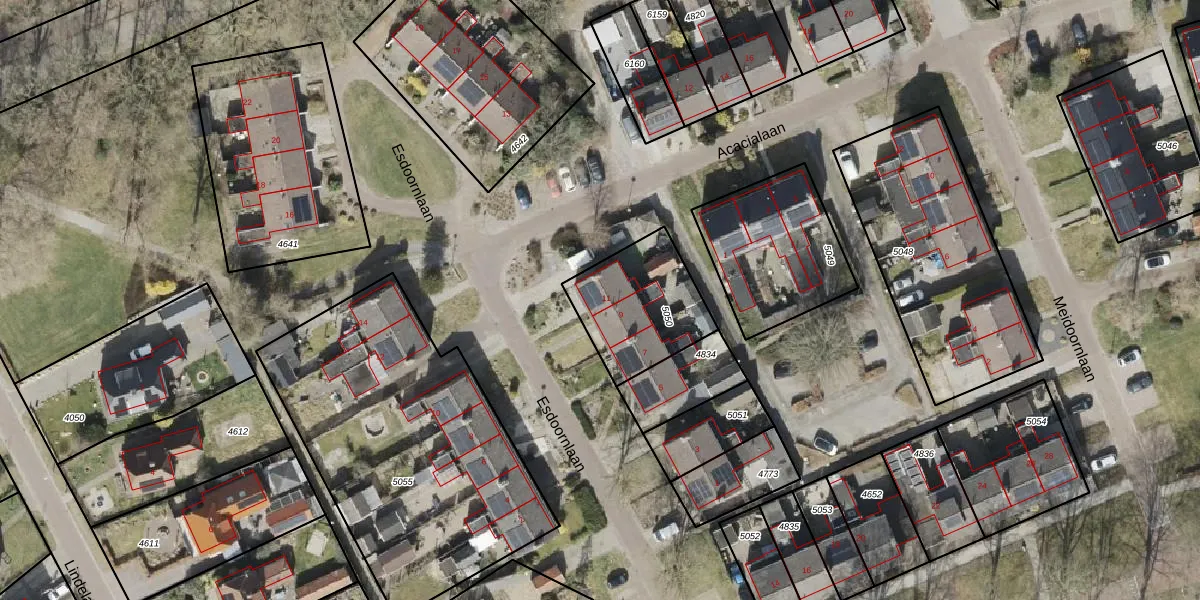 Het perceel waarop Esdoornlaan 11 staat heeft een oppervlakte van 377 m². Dit is een groot perceel. De perceeloppervlakte wordt geregistreerd door het Kadaster. Gedetailleerde informatie over de maten van dit perceel kunt u vinden in het rapport Kadastrale kaart met maatvoering van Esdoornlaan 11.