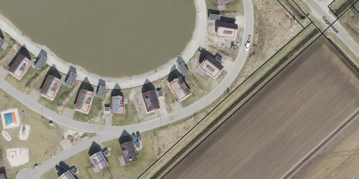 Het perceel waarop Gagelmaat 5-14 staat heeft een oppervlakte van 6,6 ha. Dit is een zeer groot perceel. De perceeloppervlakte wordt geregistreerd door het Kadaster. Gedetailleerde informatie over de maten van dit perceel kunt u vinden in het rapport Kadastrale kaart met maatvoering van Gagelmaat 5-14.