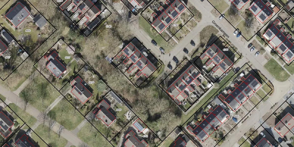 Het perceel waarop Groenkampen 16 staat heeft een oppervlakte van 595 m². Dit is een groot perceel. De perceeloppervlakte wordt geregistreerd door het Kadaster. Gedetailleerde informatie over de maten van dit perceel kunt u vinden in het rapport Kadastrale kaart met maatvoering van Groenkampen 16.