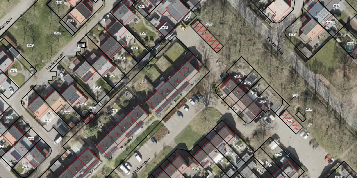 Het perceel waarop Hietkampen 16 staat heeft een oppervlakte van 3261 m². Dit is een zeer groot perceel. De perceeloppervlakte wordt geregistreerd door het Kadaster. Gedetailleerde informatie over de maten van dit perceel kunt u vinden in het rapport Kadastrale kaart met maatvoering van Hietkampen 16.
