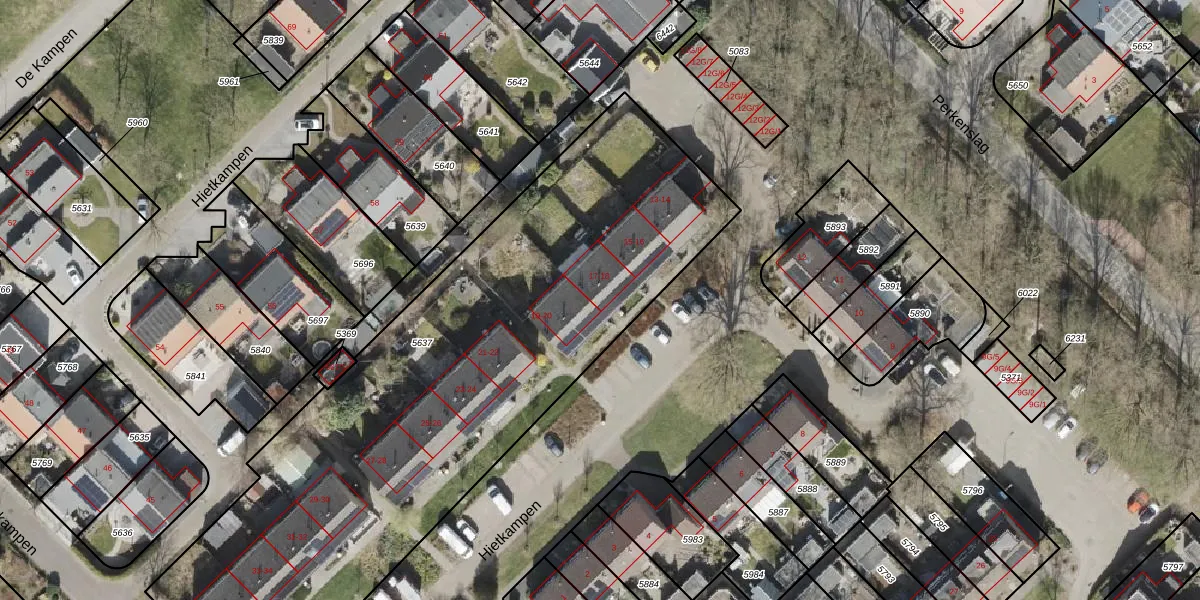 Het perceel waarop Hietkampen 18 staat heeft een oppervlakte van 3261 m². Dit is een zeer groot perceel. De perceeloppervlakte wordt geregistreerd door het Kadaster. Gedetailleerde informatie over de maten van dit perceel kunt u vinden in het rapport Kadastrale kaart met maatvoering van Hietkampen 18.