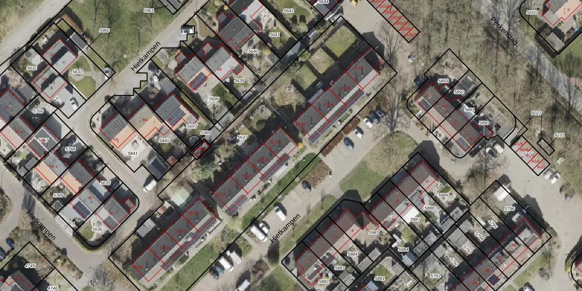 Het perceel waarop Hietkampen 21 staat heeft een oppervlakte van 3261 m². Dit is een zeer groot perceel. De perceeloppervlakte wordt geregistreerd door het Kadaster. Gedetailleerde informatie over de maten van dit perceel kunt u vinden in het rapport Kadastrale kaart met maatvoering van Hietkampen 21.
