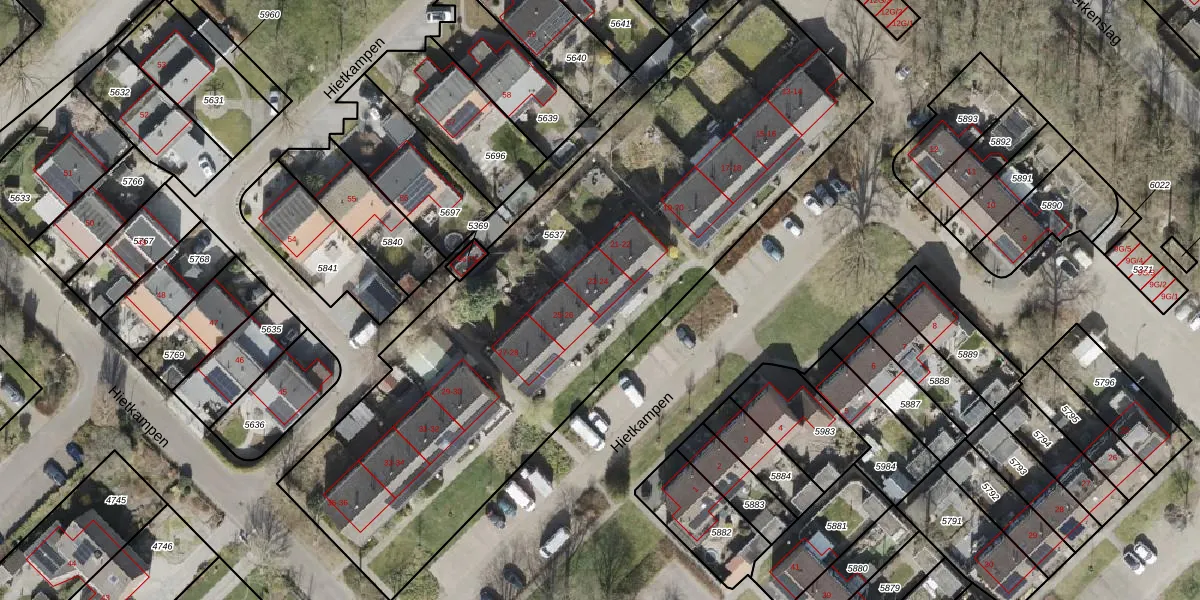 Het perceel waarop Hietkampen 24 staat heeft een oppervlakte van 3261 m². Dit is een zeer groot perceel. De perceeloppervlakte wordt geregistreerd door het Kadaster. Gedetailleerde informatie over de maten van dit perceel kunt u vinden in het rapport Kadastrale kaart met maatvoering van Hietkampen 24.